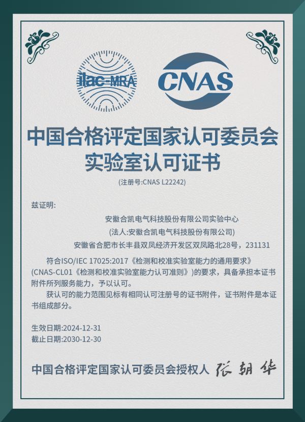 公司投资5000多万元建立了技术指标在同行中领先的:176kA大容量开断合成试验平台;配电网接地故障真型试验平台;15ms双电源快切试验平台;16000A温升试验平台等六大试验平台。公司实验中心获得了CNAS认可。